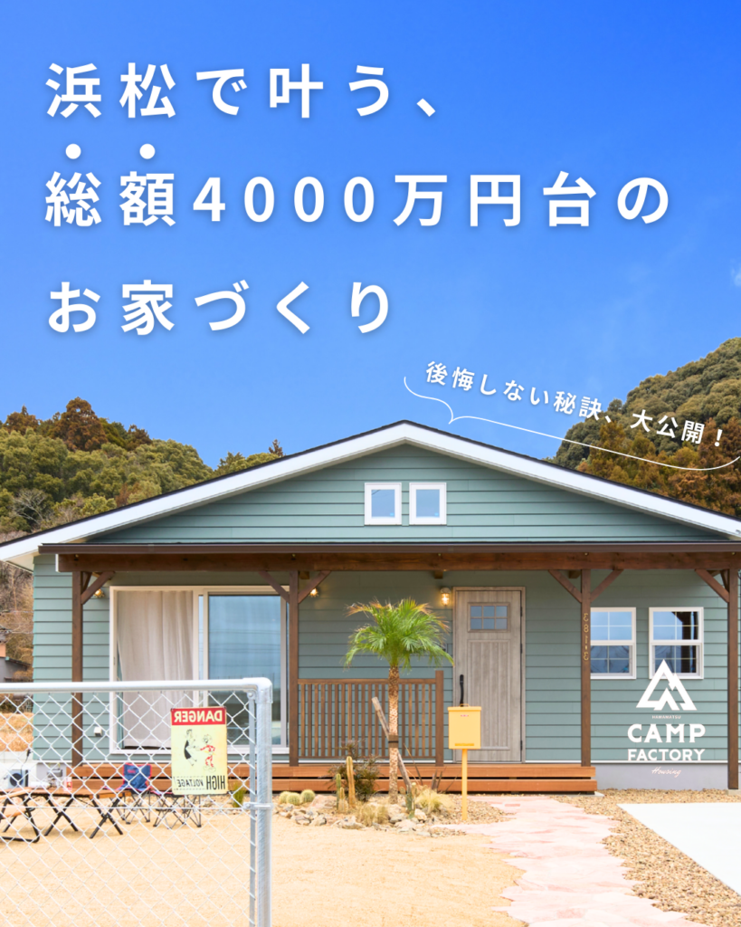 CampFactoryは浜松エリアで“総額4,000万円台”を目安にした、安心できる家づくりをご提案しています。