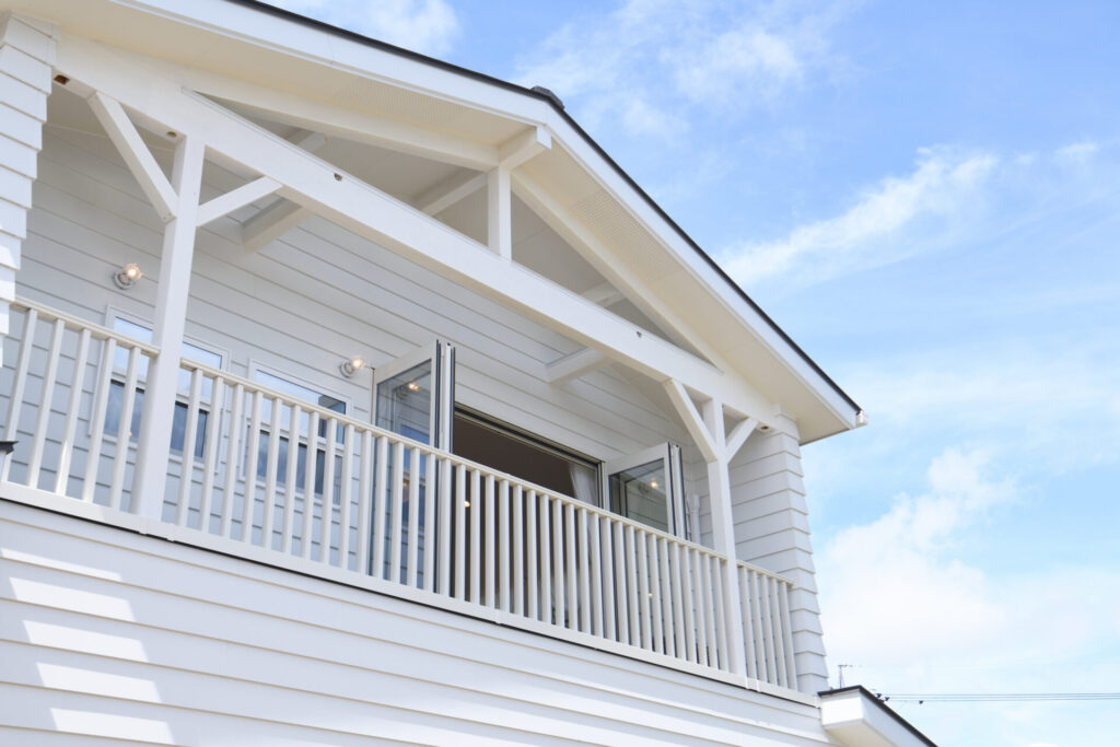 奥様のご実家の離れに建てられた、 バルコニーが付いた2階建てのカリフォルニアハウスが完成しました!